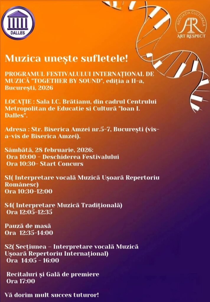Culturală „Art Respect”, organizează, Festivalul Internațional de Muzică „Together by Sound”, ediția anului 2026.